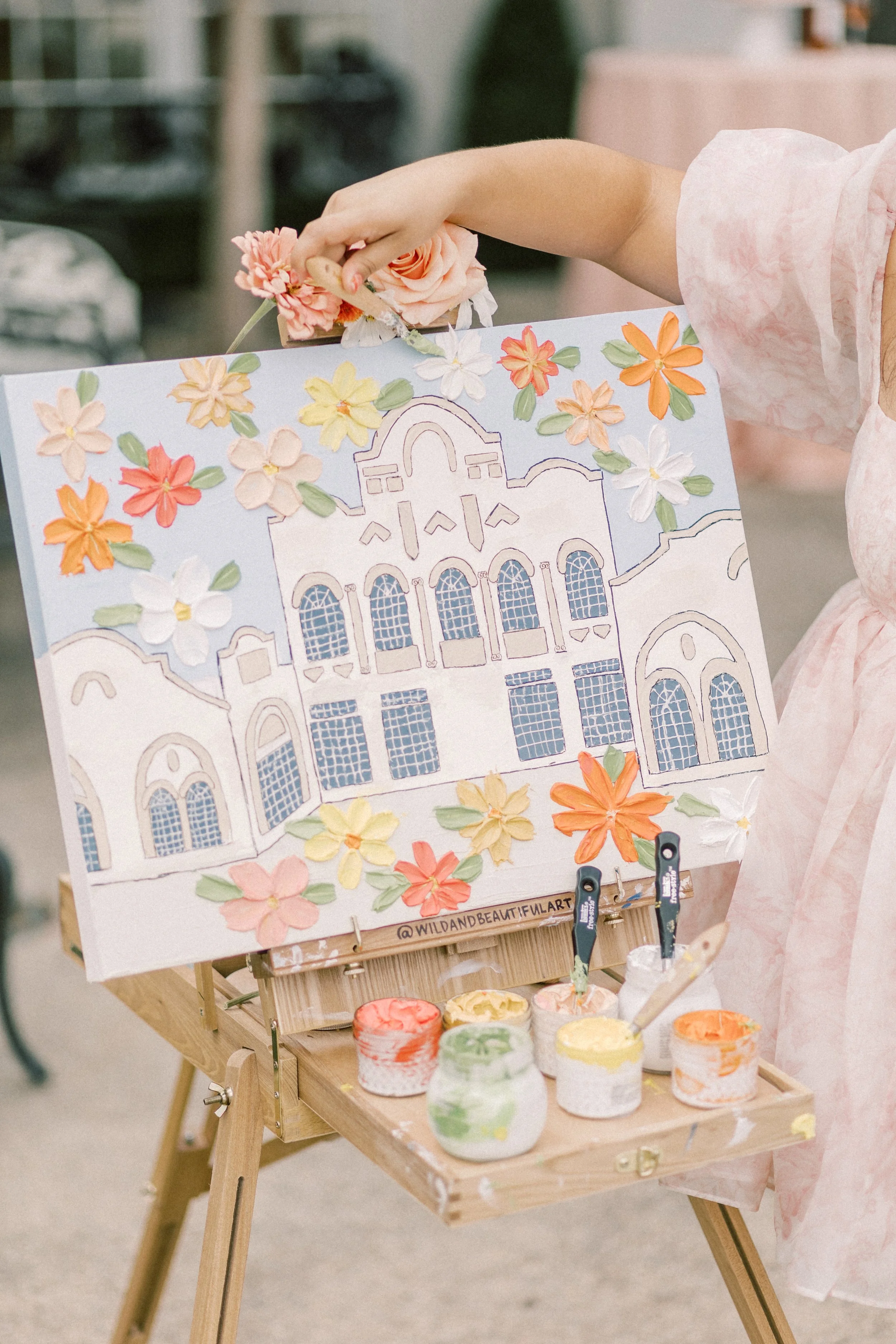 Brenda will create a painting of your wedding venue, but your wedding guests, the people you love MOST in the world, will add to it and transform it into a completely unique piece to memorialize the day.